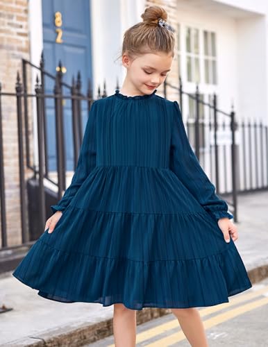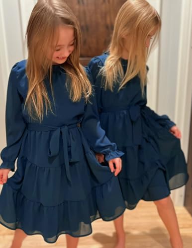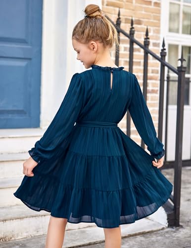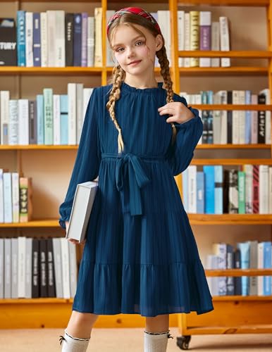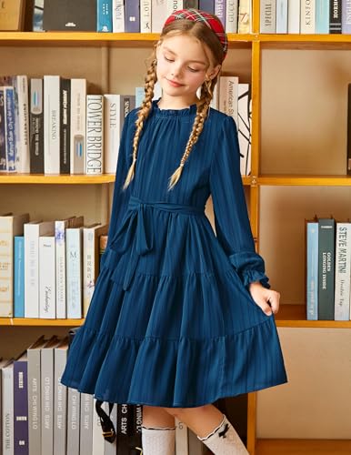 Amazon Arshiner Girls Long Sleeve Dress Tween Fall Formal Party Holiday Midi Tiered Flowy Swing Dresses with Belt 5-13 Y