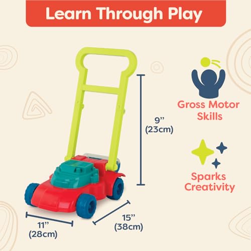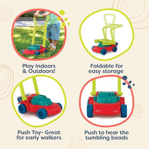 Amazon B. toys – Toy Lawn Mower – Bead Tumbler – Classic Push Toy for Kids, Toddlers – Easy Folding Storage - Indoor Outdoor Push Gardening Summer Toy– 3 Years + – Mini Mower