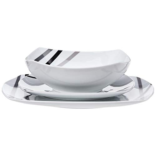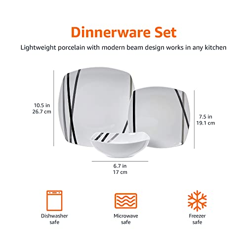 Amazon Basics 18-Piece Kitchen Dinnerware Set - Square Plates, Bowls, Service for 6 - Modern Beams