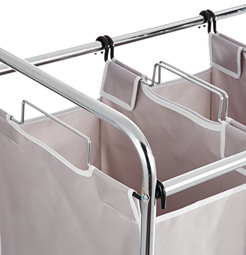 Amazon Basics 3-Bag Rectangular Laundry Hamper Sorter Basket, Grey