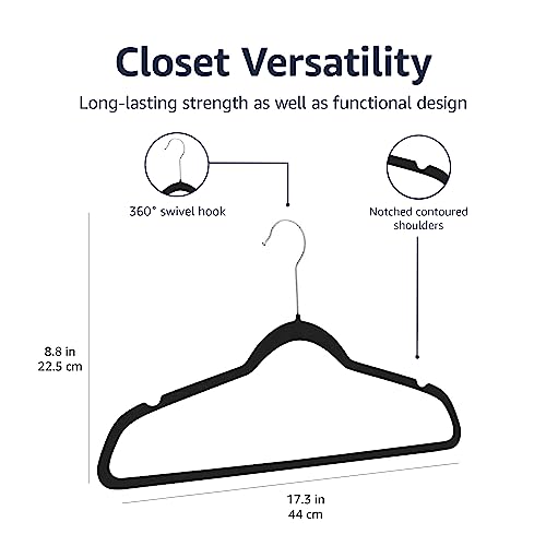 Amazon Basics Slim Velvet, Non-Slip Suit Clothes Hangers, Pack of 30, Black/Silver