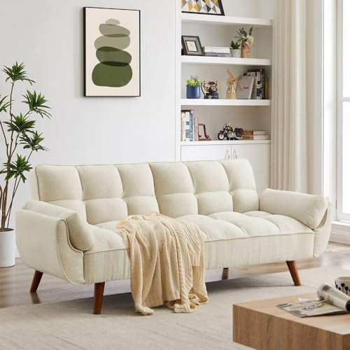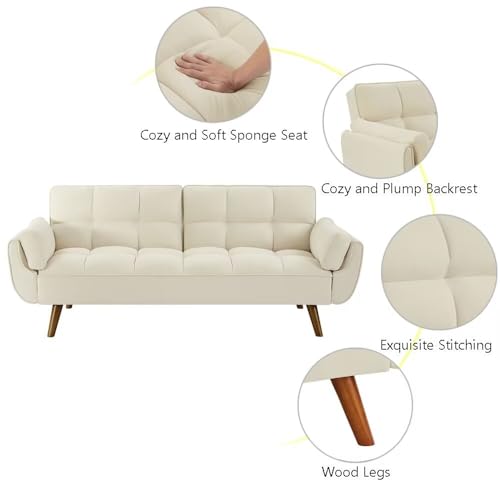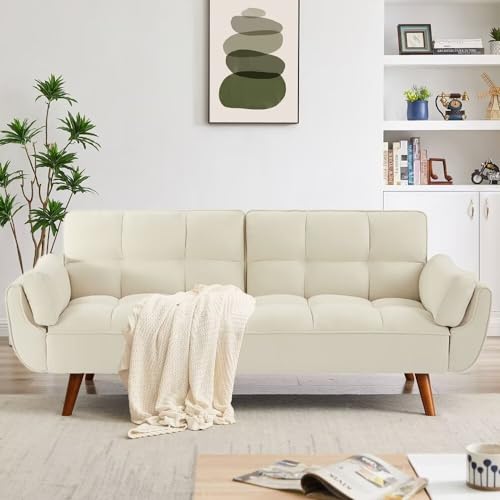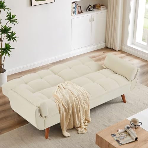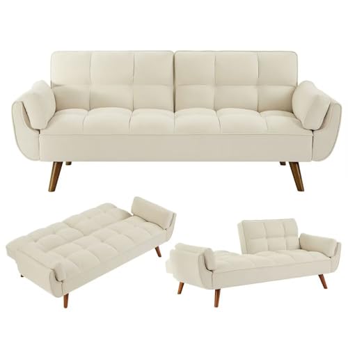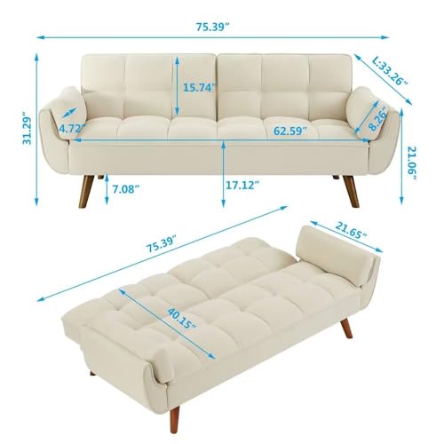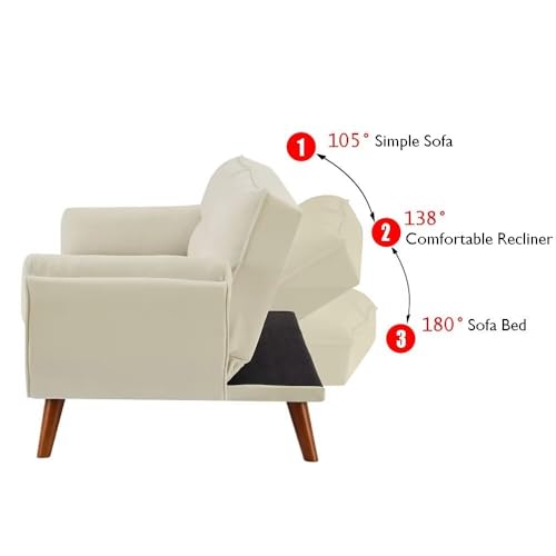 Amazon Convertible Sofa Bed Folding Loveseat Couch, Modern Futon Recliner Sleeper with Adjustable Backrest, Beige
