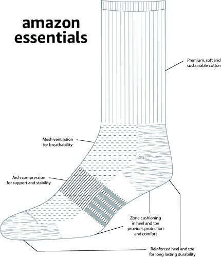 Amazon Essentials Men's Performance Cotton Cushioned Athletic Crew Socks, 6 Pairs