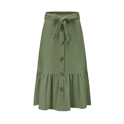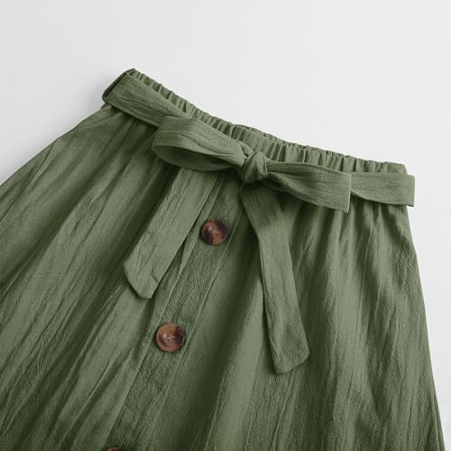 Amazon Girls Maxi Skirts Button Front High Waisted Long Skirt with Belt Ruffled Skirts with Pocke