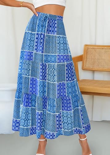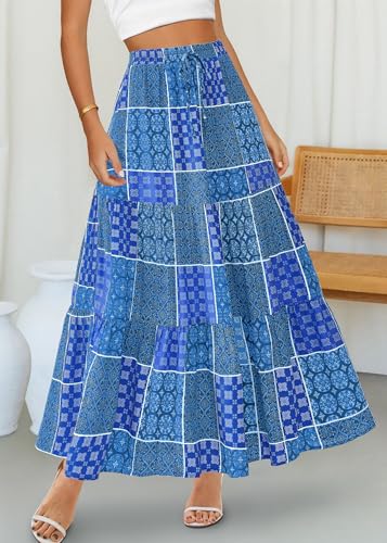 Amazon KIRUNDO Womens Boho Floral Maxi Midi Skirt 2025 Summer Trendy Elastic Waist Pleated Aline Flowy Long Skirts Beach Vacation