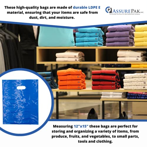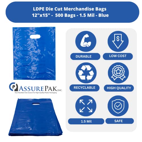 Amazon LDPE Die Cut Merchandies Bags - 12"x15" - 500 Bags - 1.5 mil - Blue - 1215DCBLUE - AssurePak