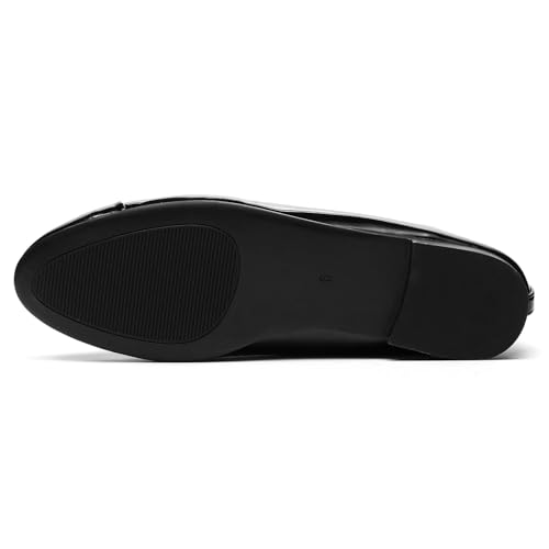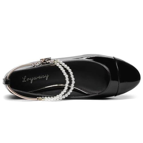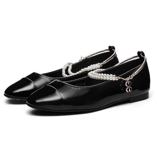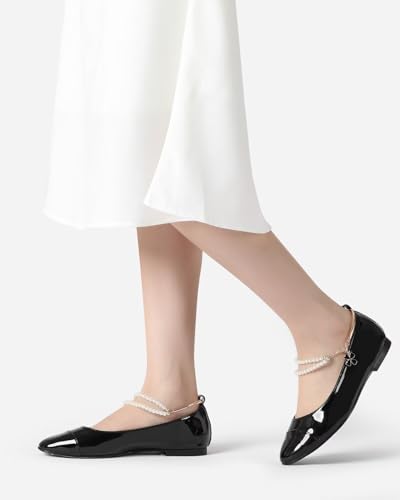Amazon Lynweisy Women's Two-Tone Mary Jane Flats - Adjustable Buckle Strap Ballet Flats Shoes, Non-Slip Black/Silver Comfort Dress Flats