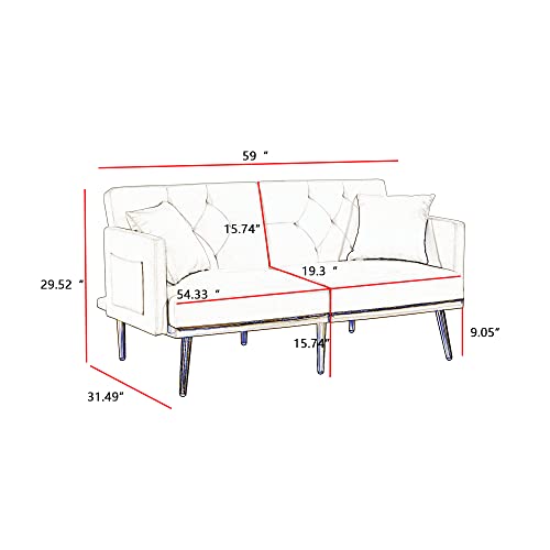 Amazon Velvet Tufted Futon Sofa Couch Bed Folding Convertible Loveseat Sleeper Sofabed Adjustable Reversible Love Seat Daybed Sofacama with Golden Metal Legs and 2 Pillows for Living Room Apartment Office