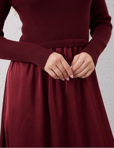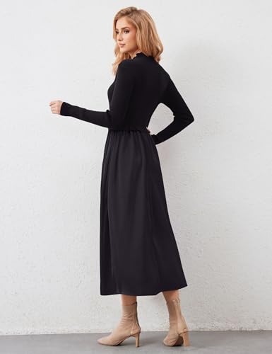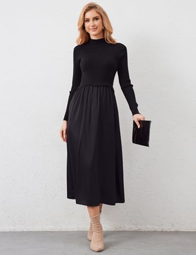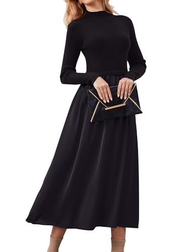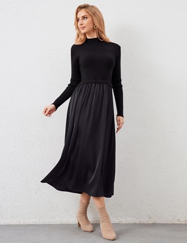 Amazon Women Long Sleeve Sweater Maxi Dress Patchwork Slim Fit Flowy Long Dresses Casual A-Line Knit High Neck Dress Fall
