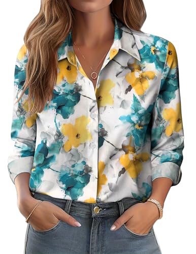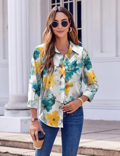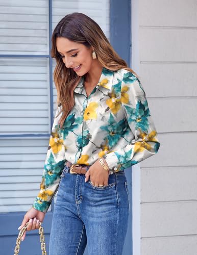 Amazon Zeagoo Button Down Shirts for Women Dressy Floral Printed Long Sleeve Blouse Business Casual Work Tops