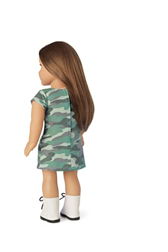 American Girl Truly Me 18-Inch Doll 107 with Brown Eyes, Layered Straight Brown Hair, Light-to-Medium Skin with Warm Undertones, Camo T-Shirt Dress
