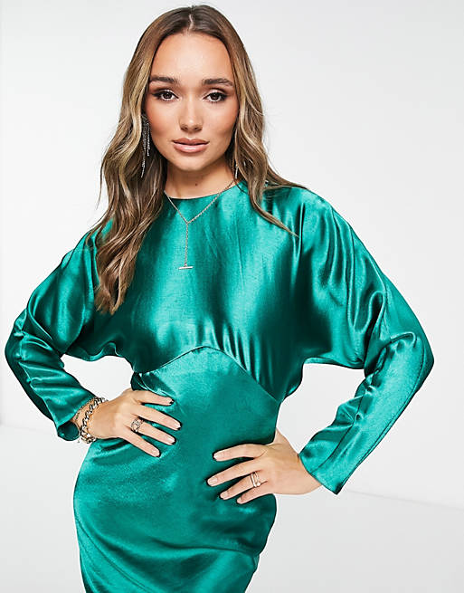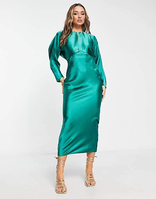 ASOS DESIGN satin batwing bias cut maxi dress in green
