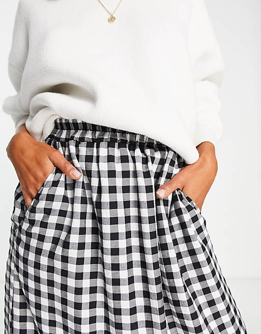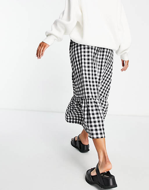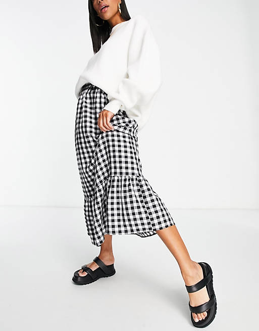 ASOS DESIGN tiered midi skirt with pockets in gingham