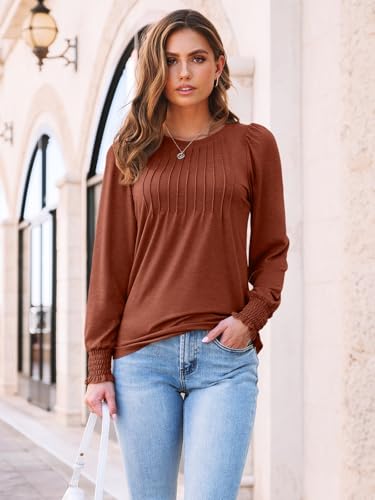 AUTOMET Long Sleeve Shirts Womens Pleated Business Casual Blouses with Smocked Cuffs