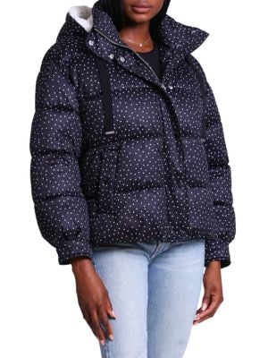 Avec Les Filles Relaxed Polka Dot Faux Fur Lined Hood Puffer Jacket
