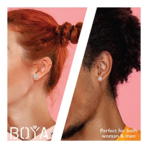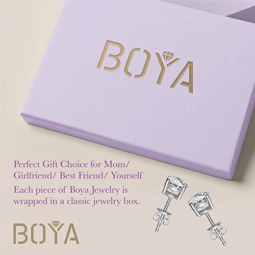 Boya Moissanite Stud Earrings for Women,0.6-2ct 18K White Gold Plated Silver Friction Back and Post for Women Men, D Color VVS1 Round Lab Created Diamond Earrings Men