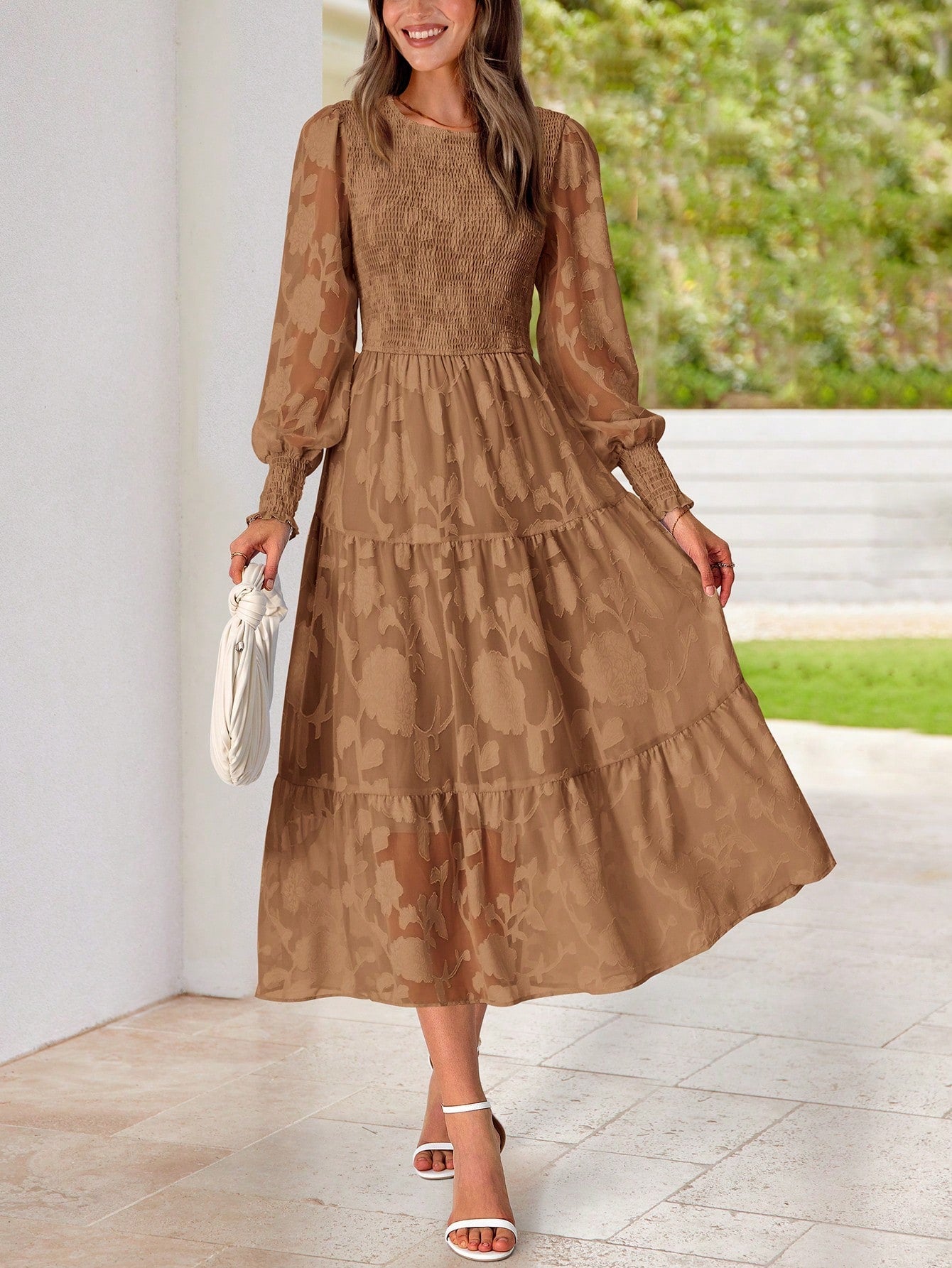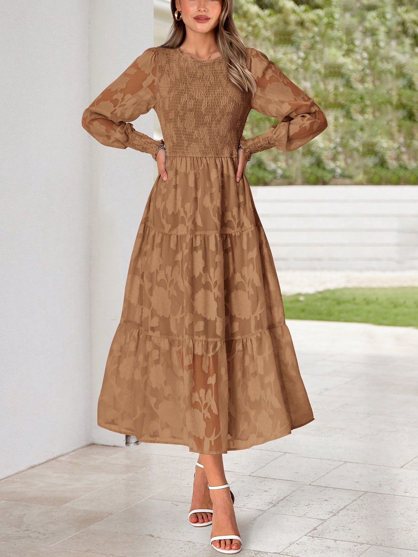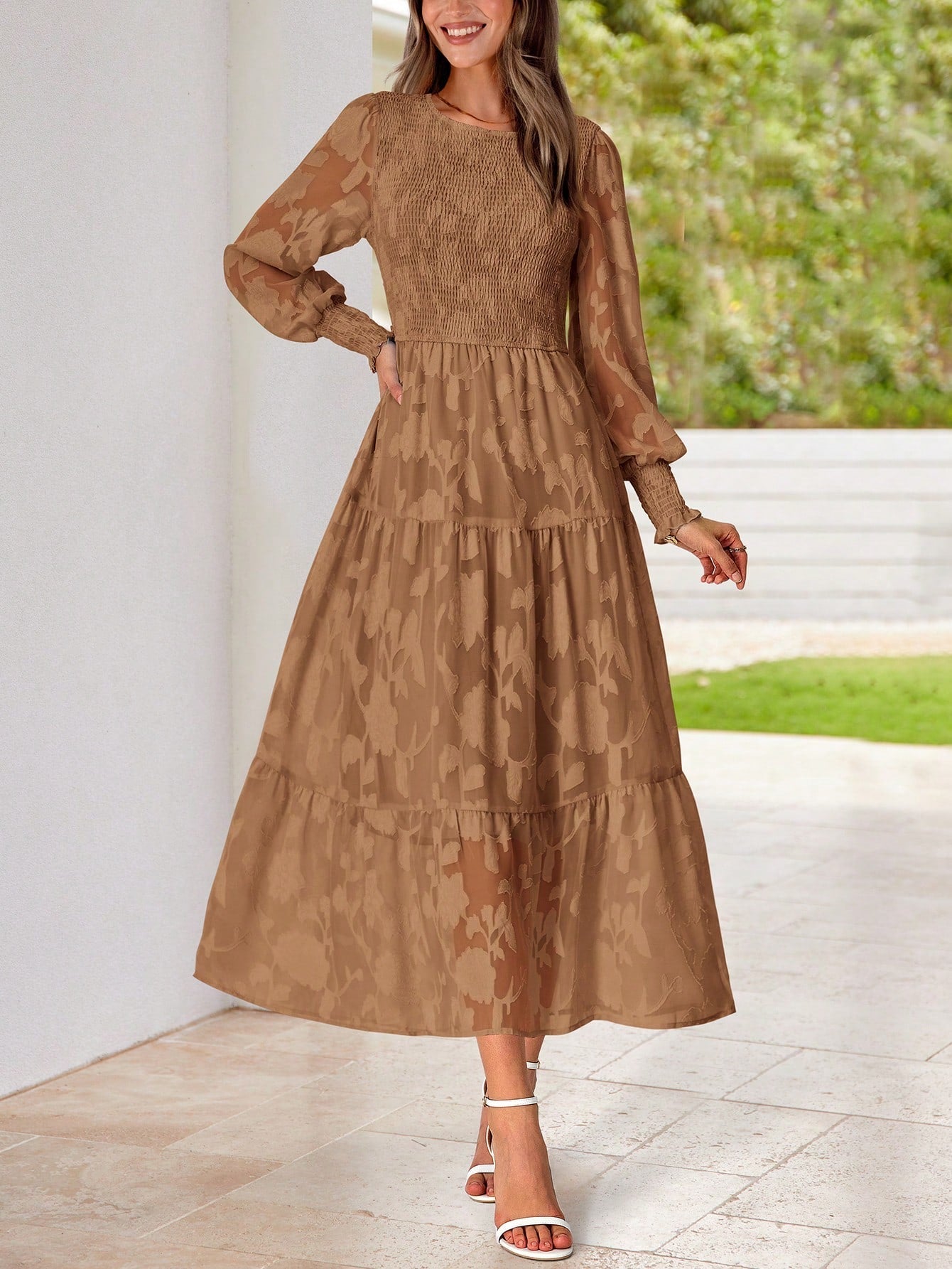 BTFBM Women's Lantern Sleeve And Shirred A-Line Dress