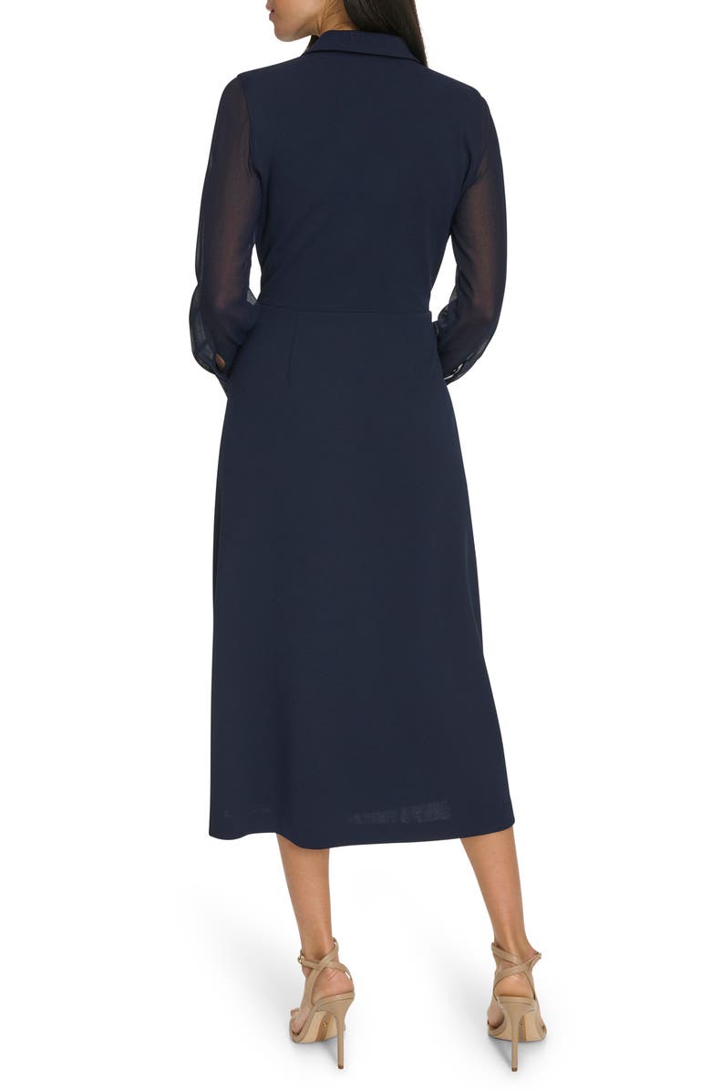 Calvin Klein Long Sleeve Mixed Media A-Line Midi Dress