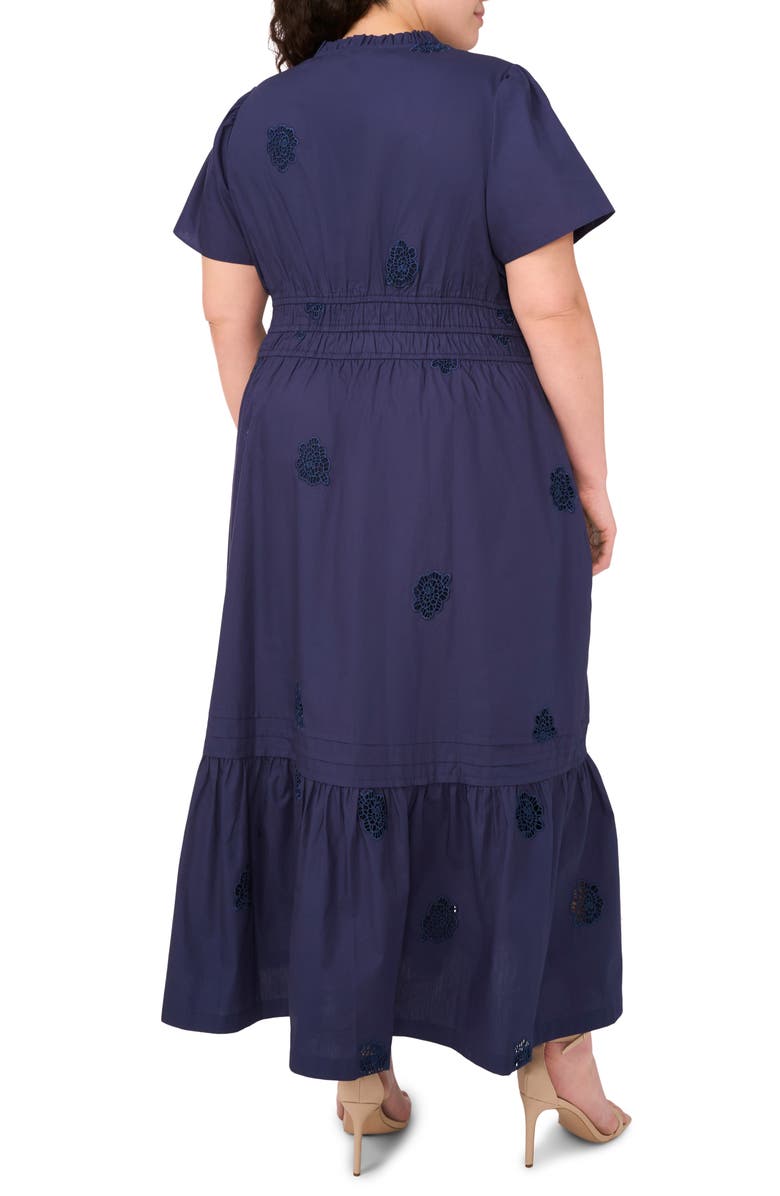 CeCe Floral Embroidered Flounce Hem Cotton Maxi Dress