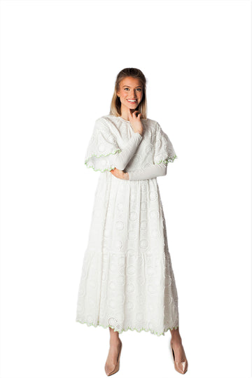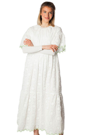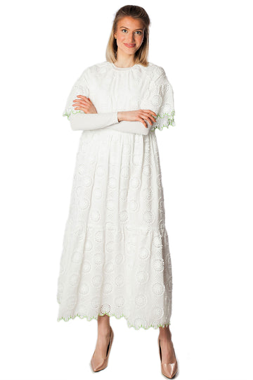 Circle Eyelet Contrast Stitching Dress
