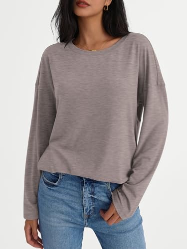 Clip coupon AUTOMET Womens Long Sleeve Shirts Loose Fitted Crewneck Basic Tops Casual Outfits Fall Clothes 2024