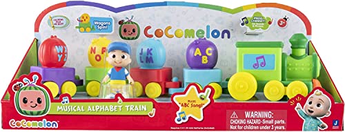 Cocomelon Musical Alphabet Train with JJ-Features Alphabet Train with Music,Sounds & Phrases-4 Alphabet Wagons,1 JJ Conductor Figure-Plays Clips of ‘ABC Song’-Toys for Kids and Preschoolers