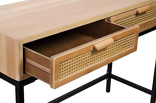 COZAYH Rustic Console Table with 2 Drawers Entryway Hallway Farmhouse Country Style, Cabin-Inspired Natural Finish (Natural Brown)