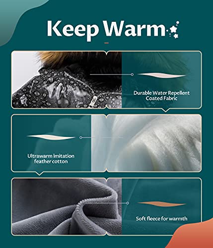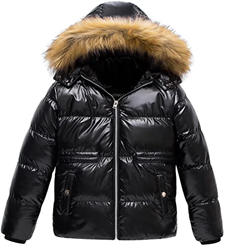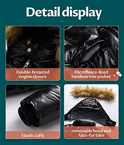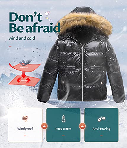 CREATMO US Girl's Kids Metallic Shiny Jacket with Detachable Fur Collar Warmth Winter Outerwear