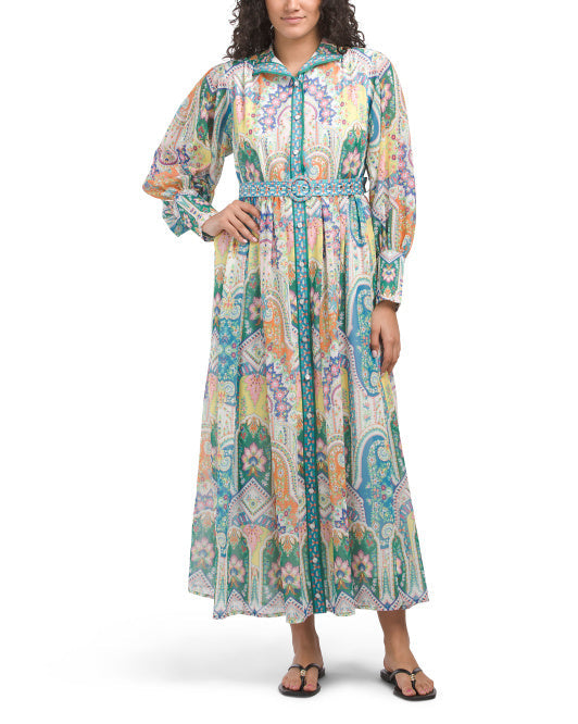 DALIA MACPHEE Long Sleeve Floral Maxi Dress With Belt