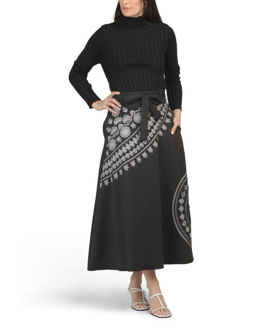 DALIA MACPHEE Mixed Media Mock Neck Long Sleeve Maxi Dress