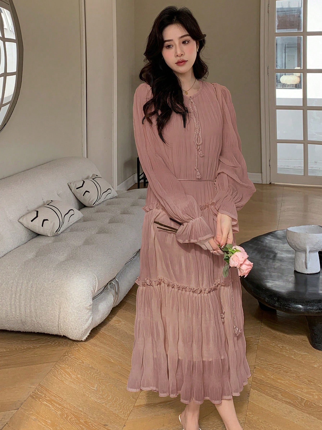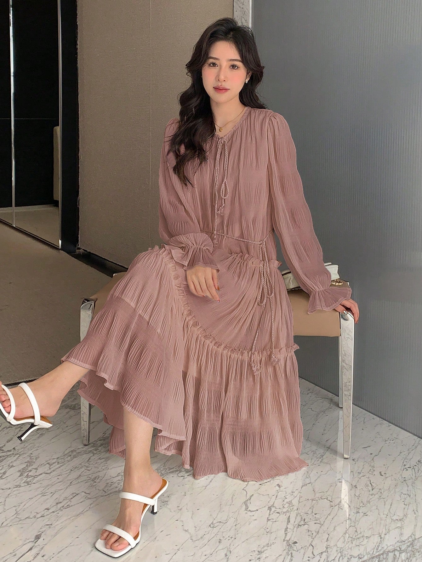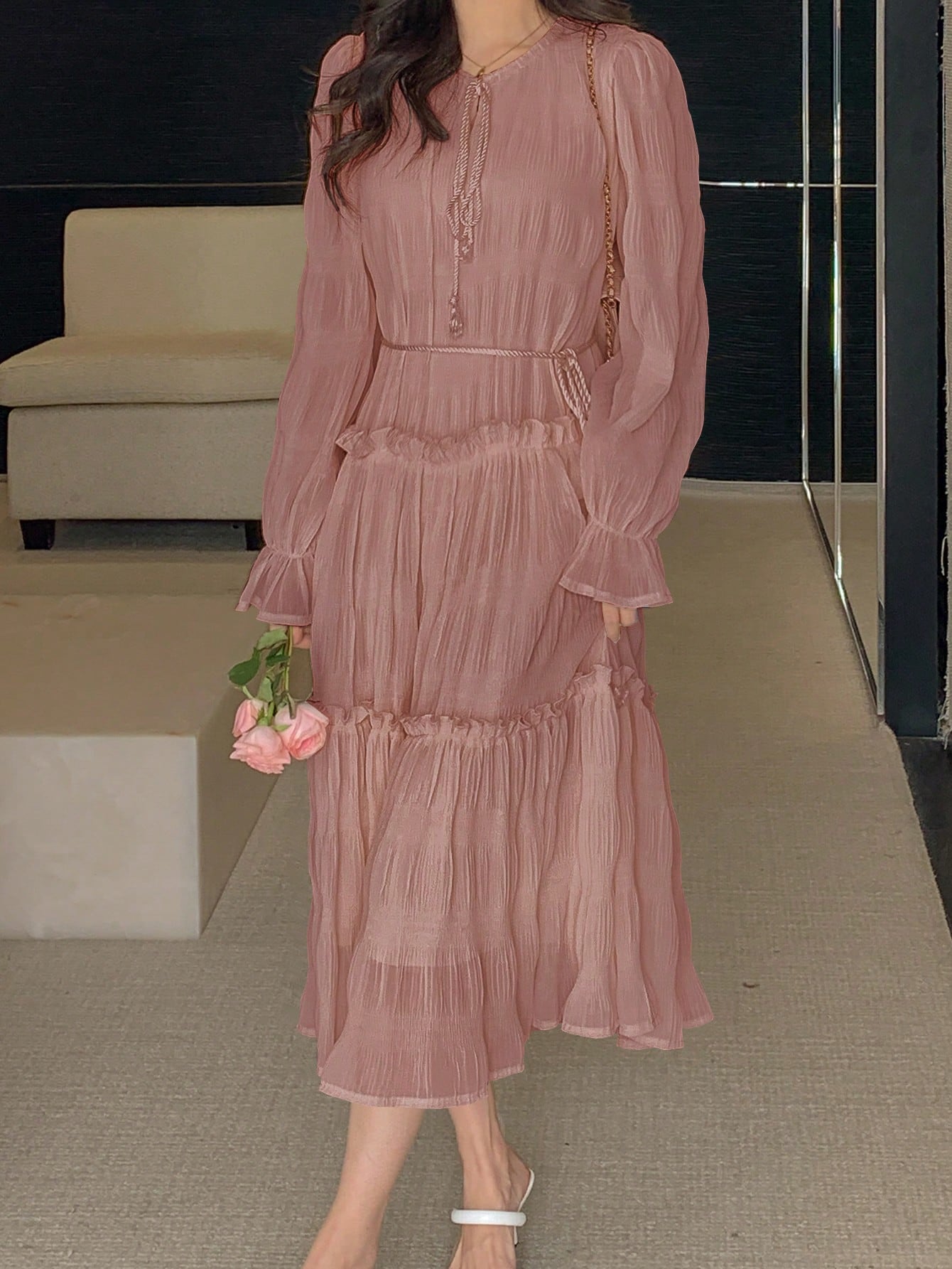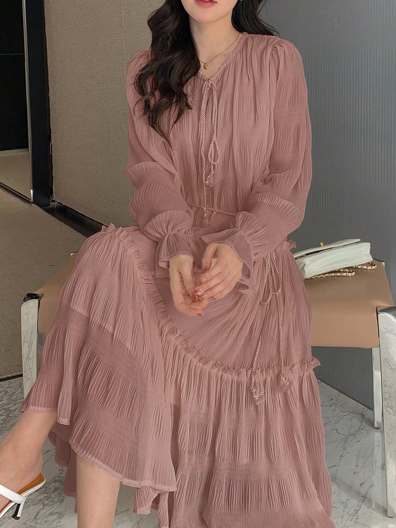 DAZY Solid Flare Sleeve Ruffle Hem Dress