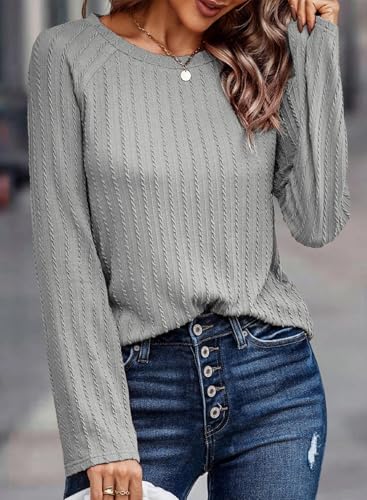 Dokotoo Womens Tops Long Sleeve Lightweight Shirts 2024 Fall Fashion Trendy Tops Crewneck Casual Knit Basic Tee