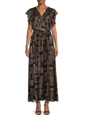 Donna Ricco Flutter Sleeve Belted Wrap Dress