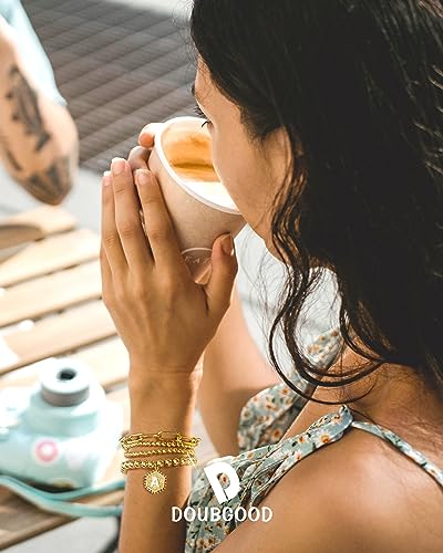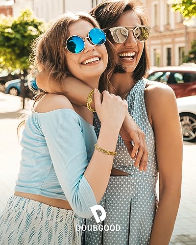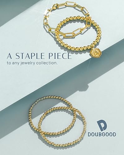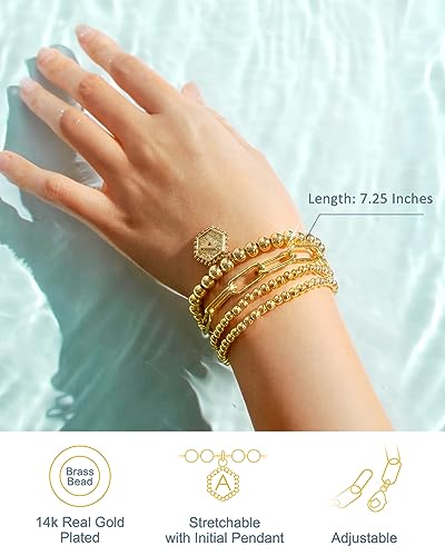 doubgood Gold Beaded Bracelets for Women, Stackable Gold Bracelets for Women Men 14K Real Gold Plated Stretch Bead Ball Bracelet with Letter Pendant