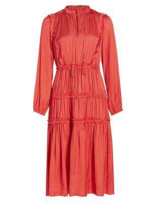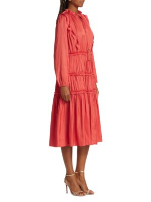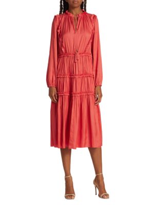 Elie Tahari Whisper Ruffle Tassel Midi Dress