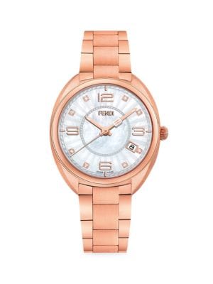 Fendi 34MM Stainless Steel, Mother-Of-Pearl & Diamond Bracelet Watch