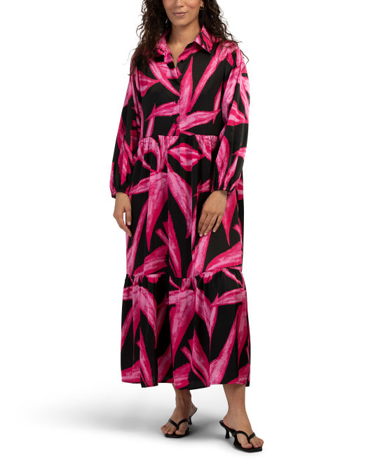 FIRST LOVE Abstract Print Maxi Shirt Dress