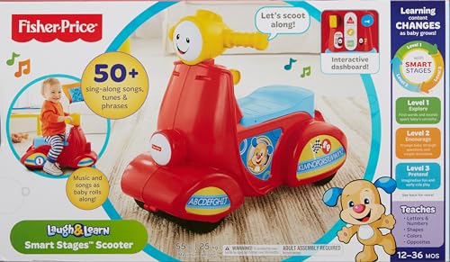 Fisher-Price Baby Learning Toy Laugh & Learn Smart Stages Scooter Ride-On with Music for Developmental Play Toddlers Ages 1+ Years