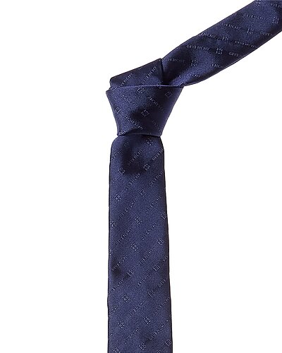 Givenchy Navy Tonal Diagonal Logo Silk Tie