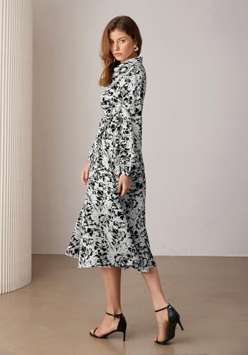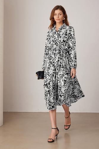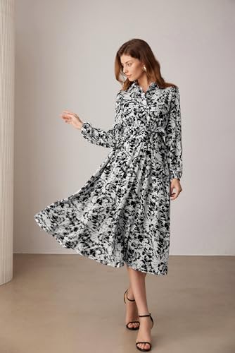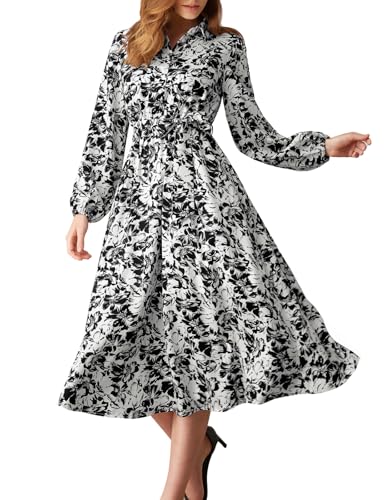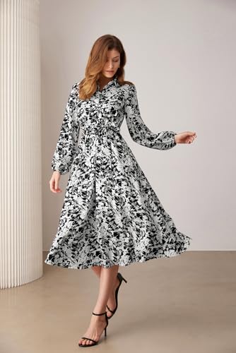 GRACE KARIN Women Floral Collar Shirt Dress Elegant Lantern Long Sleeve Casual Vacation Beachwear