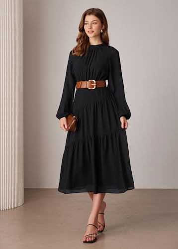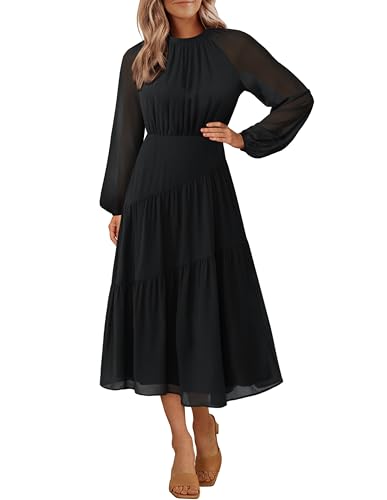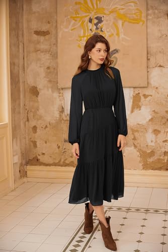 GRACE KARIN Women's 2024 Fall Dress Long Sleeve Empire Waist Tiered A Line Swing Flowy Midi Dress