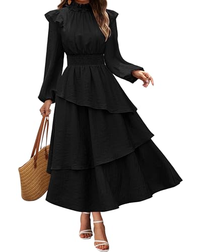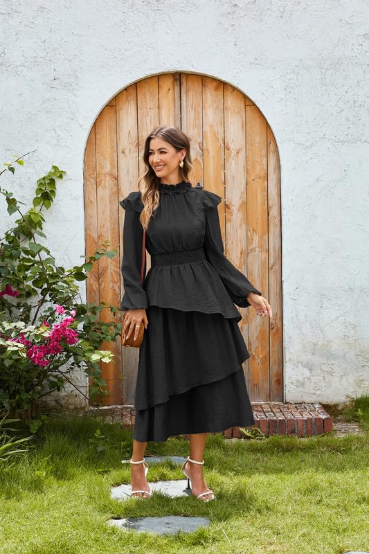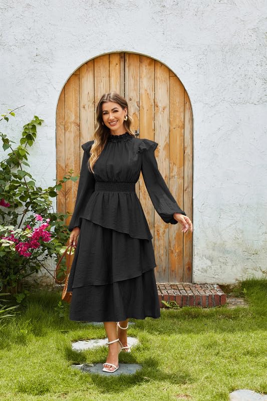 GRACE KARIN Women's Long Sleeve Fall Dresses 2024 Casual Ruffle Mock Neck Midi Wedding Guest Cocktail Flowy Dress