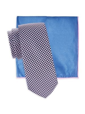 Hickey Freeman 2-Piece Gingham Tie & Pocket Square Gift Set