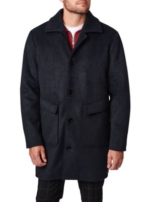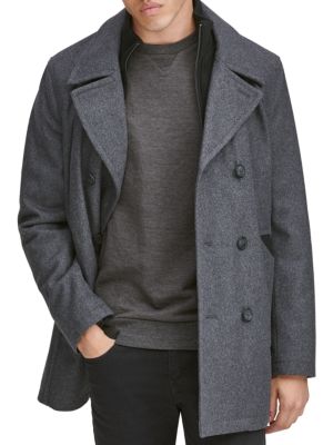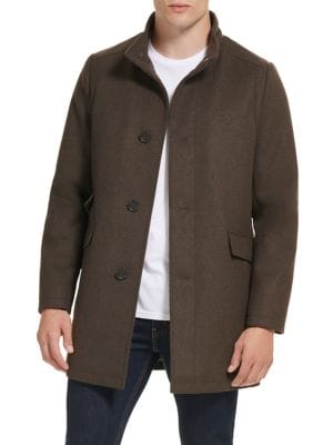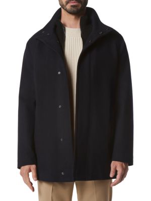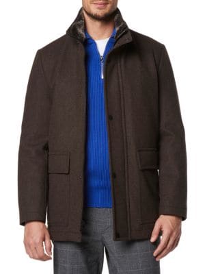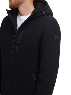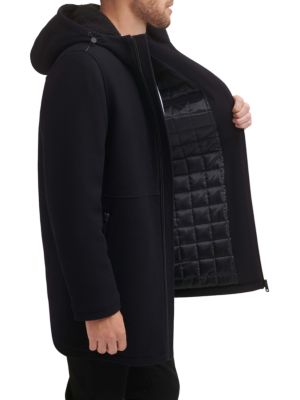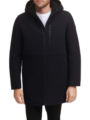 Kenneth Cole Faux Shearling Hooded Wool Blend Coat