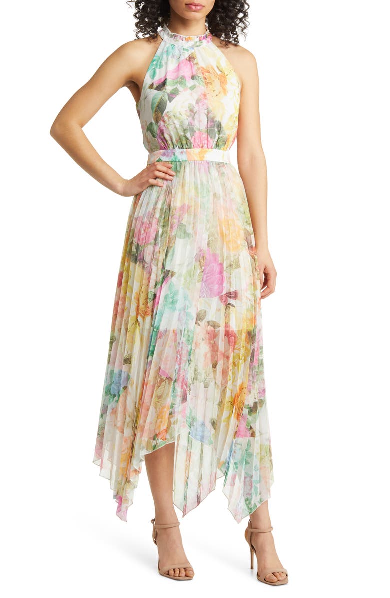 VINCE CAMUTO Halter Floral Chiffon Dress