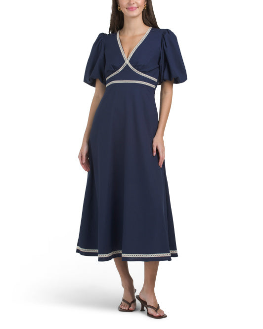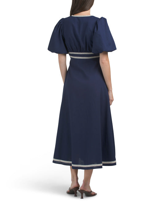 WHITE CLOSET Linen Blend Lace Trim Maxi Dress